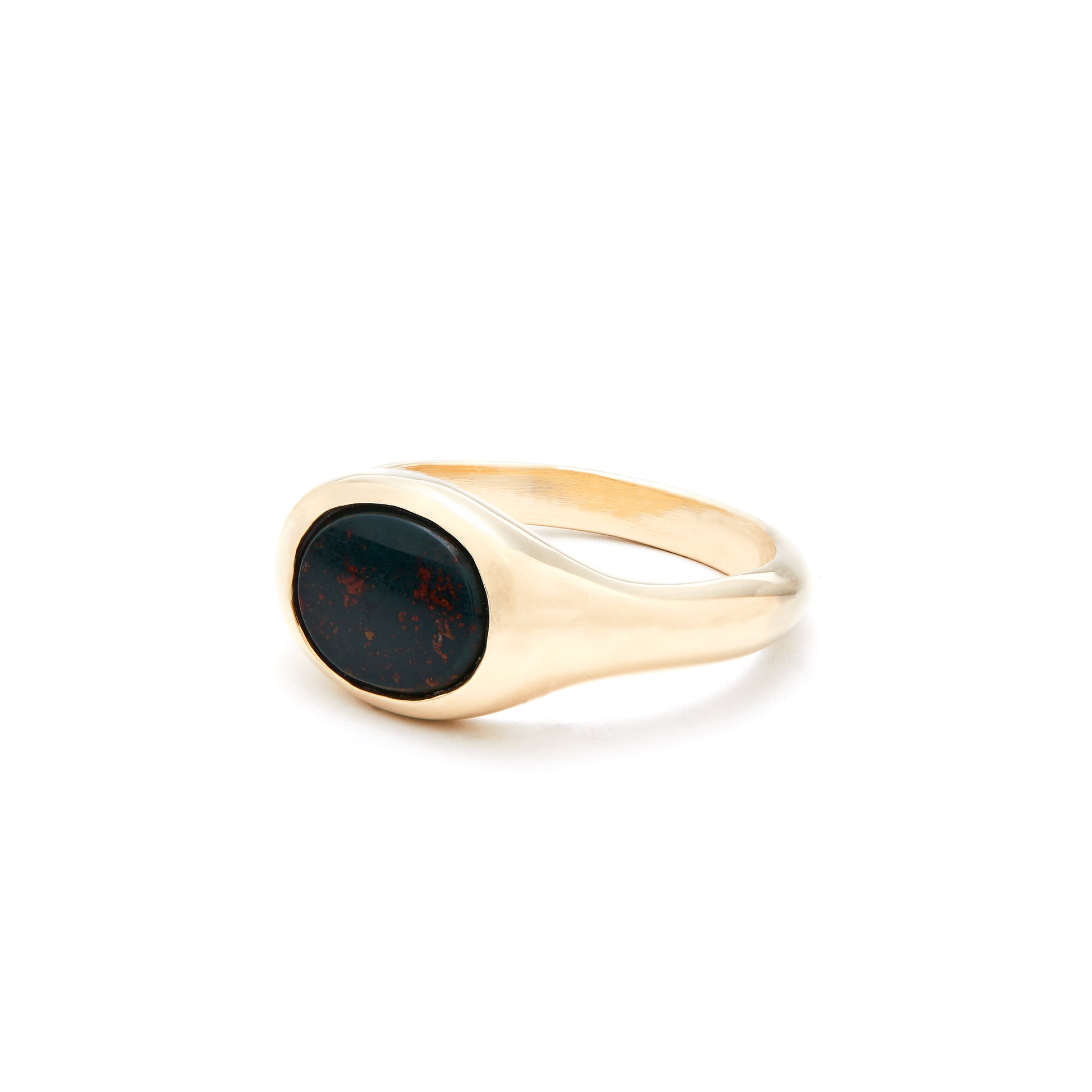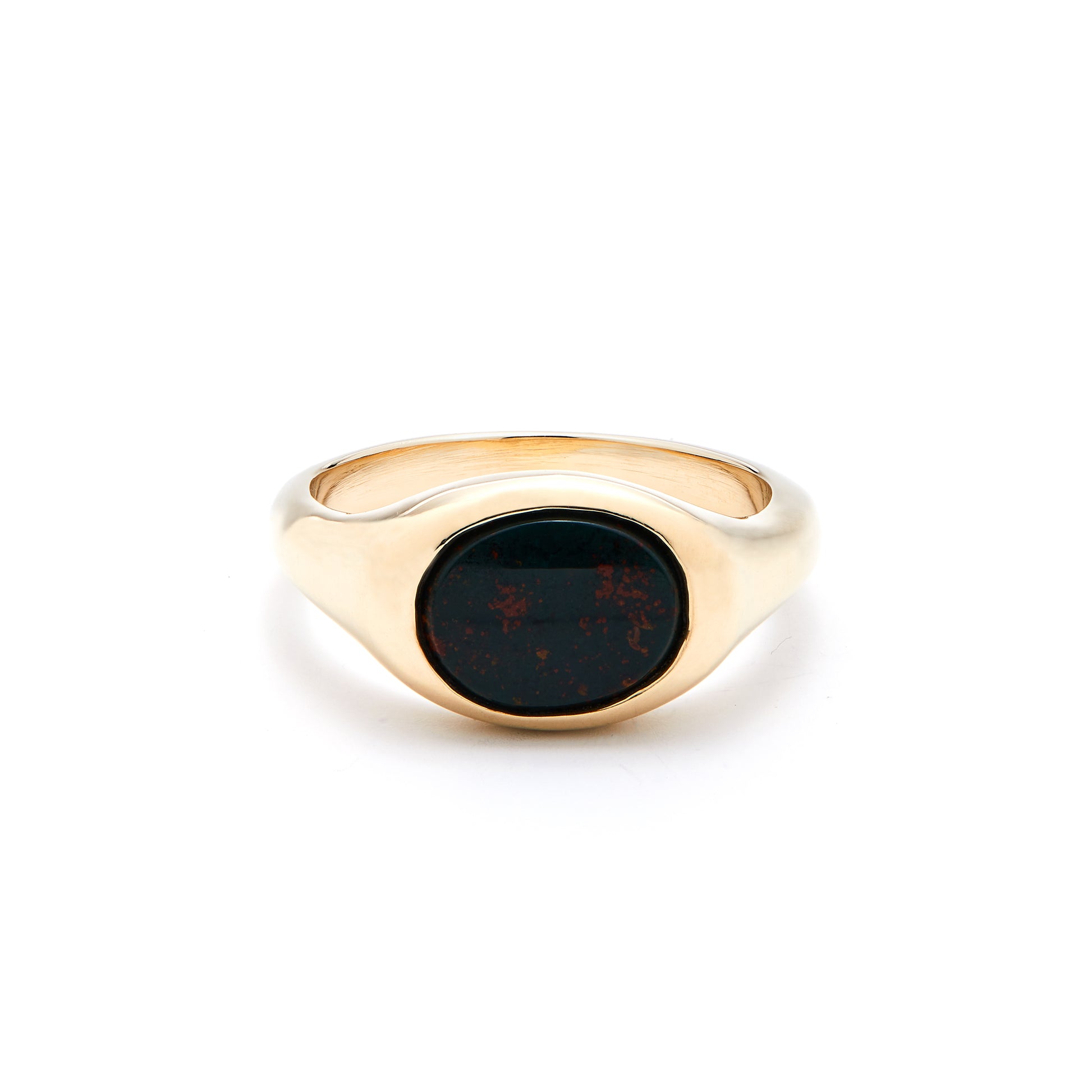 Custom made solid 14k yellow gold bezel set Bloodstone signet ring.