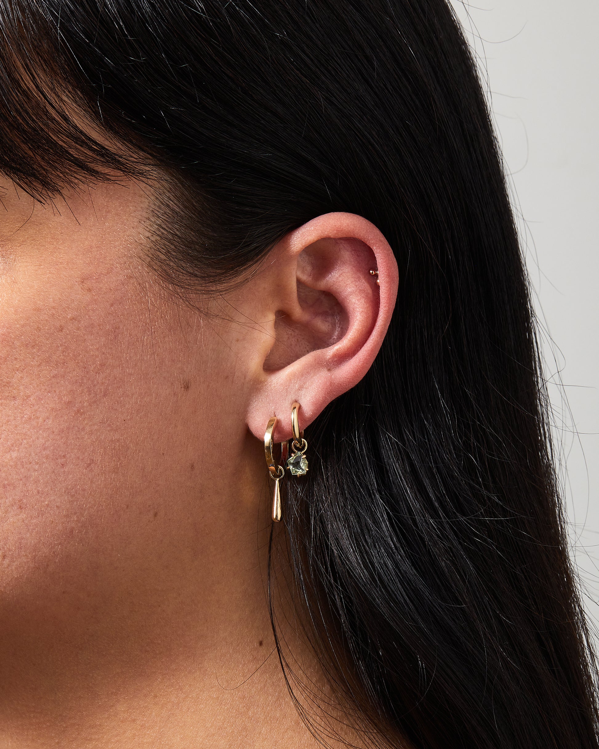All charms in the Geo Charm Collection are sized to slide on to any of our hinged hoops, or can be clipped on to any of our chains using our Necklace Clip.
